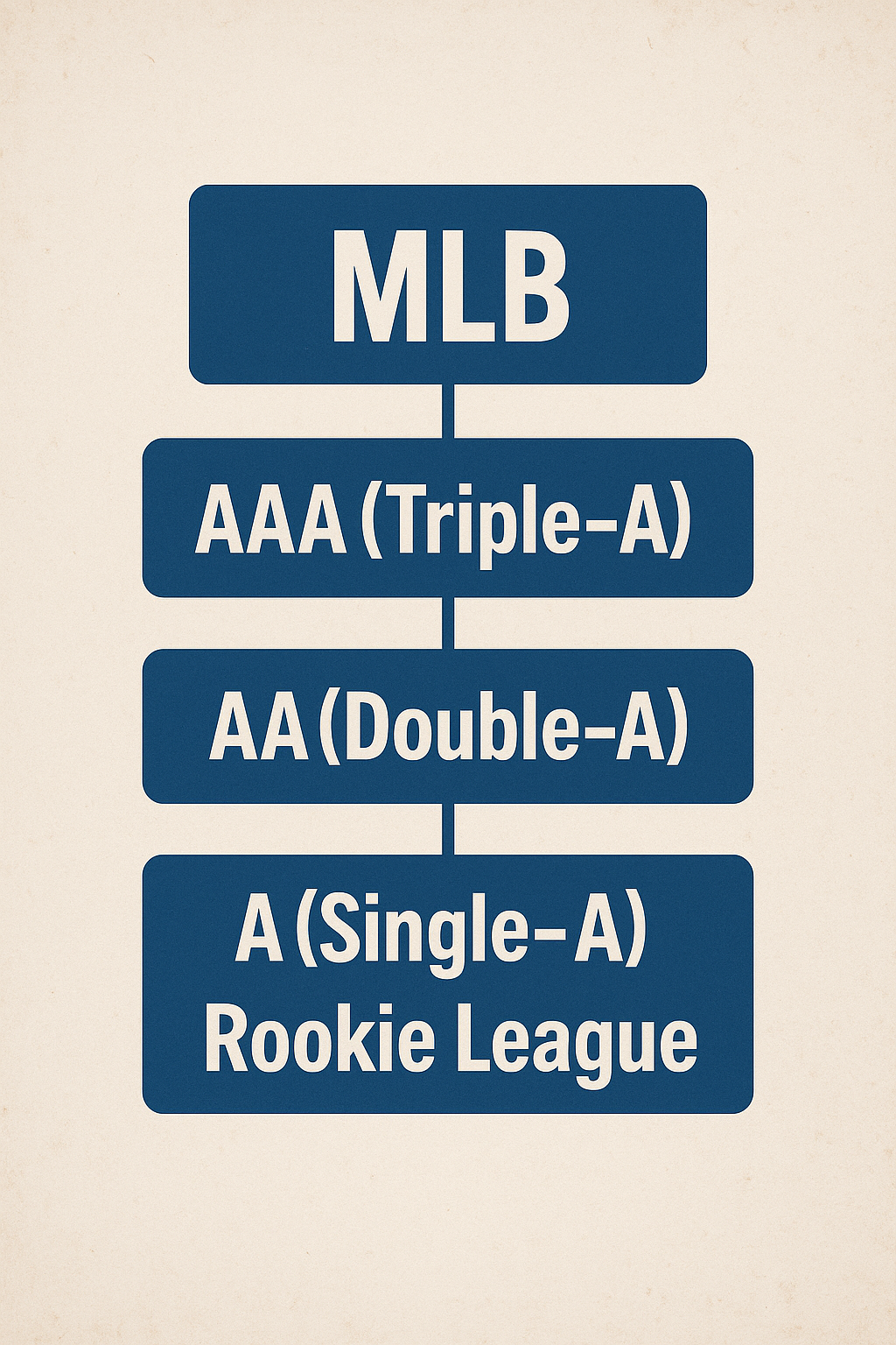 MLB 구단에 소속된 유망주들이 단계를 밟아 올라오는 시스템. 단계는 아래와 같아요.- AAA (트리플A): MLB 직행 직전, 가장 높은 마이너리그
