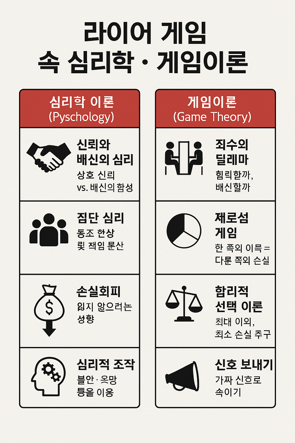 | [심리] 『라이어 게임』 – 드라마 속 심리학과 게임이론 완전 해설 (8) | 2025.09.02 |