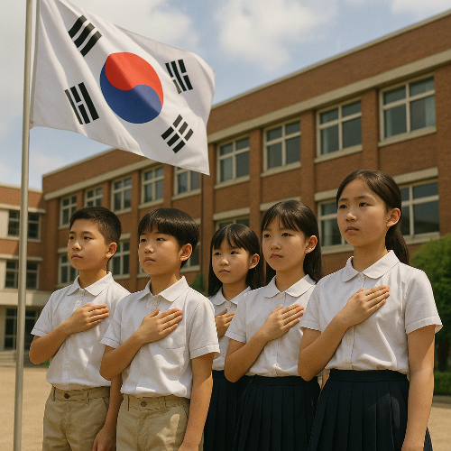 | 교가 & 국민헌장 | 아침마다 합창, 낭독 | 생략되거나 디지털화 |