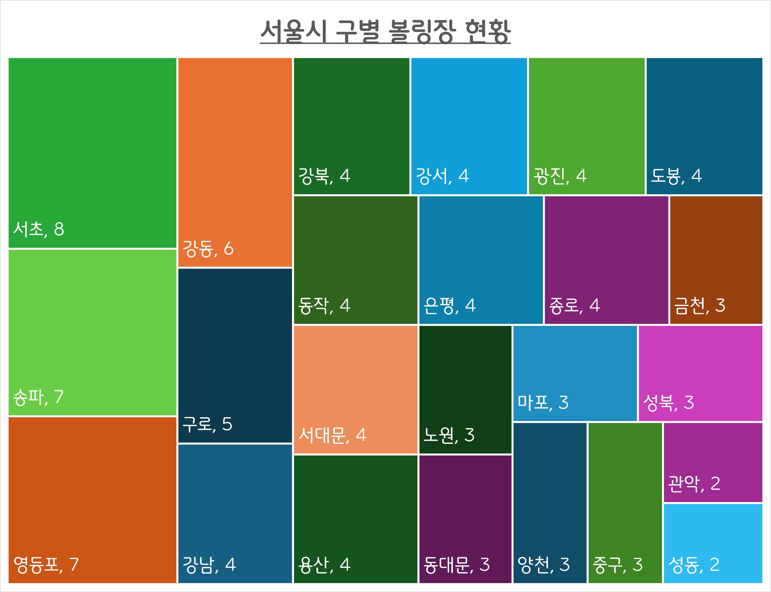 일단 찾아본 서울시 볼링장수는 합치면 101개나 있구요,