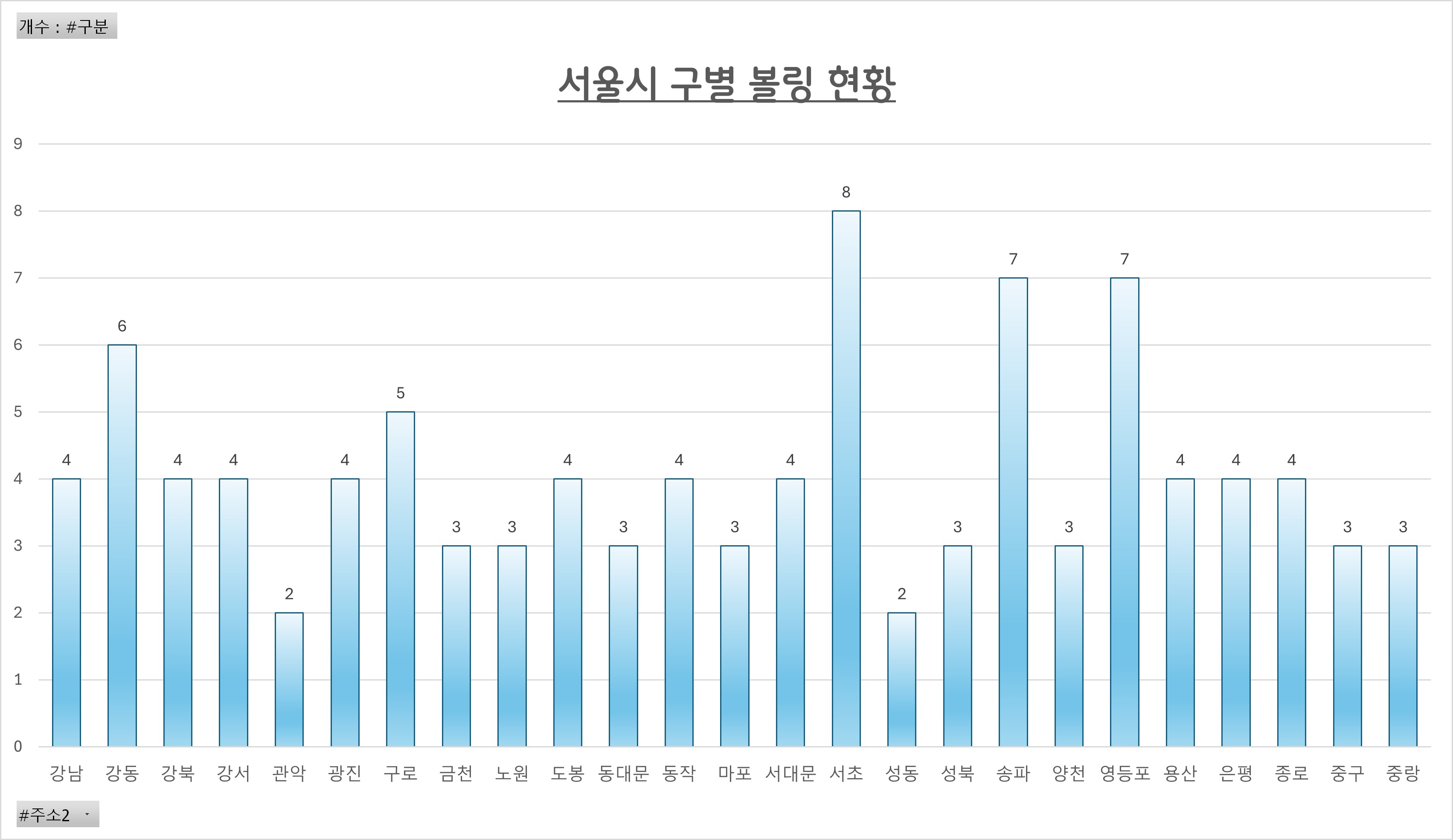 반대로 관악구나 성동구는 2개로 굉장히 적었어요.