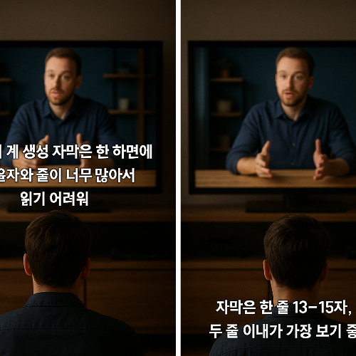👉 “자막은 한 줄 13글자 이내, 두 줄 이내가 가장 보기 좋다.”