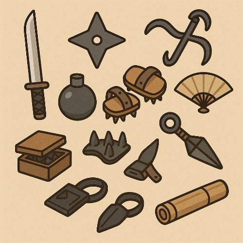 닌자 하면 떠오르는 것이 바로 도구입니다. 실제로는 화려한 무기가 아니라 실용적이고 은밀한 도구가 많았습니다. 대표적인 것들을 정리해 보겠습니다.